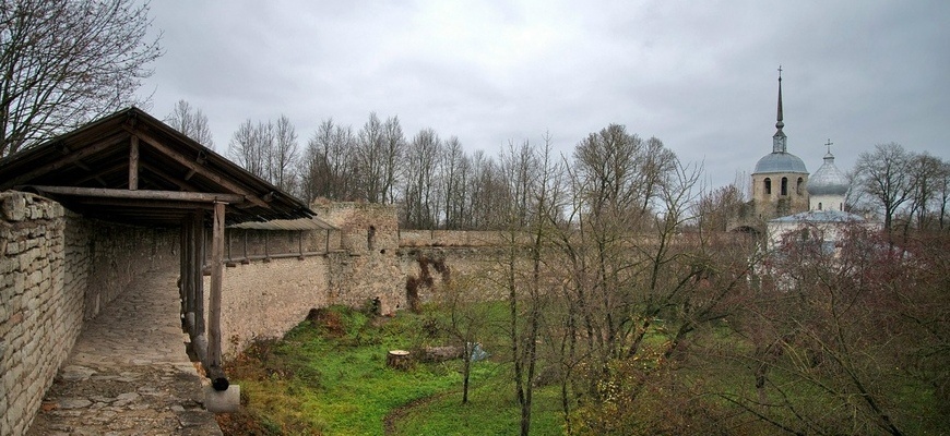 Крепость, построенная из известняка для защиты Новгородской области от нападения врагов. Оборонительный пункт на реке Шелони. Крепость с внутренним цветущим садом, Никольской церковью и музеем.