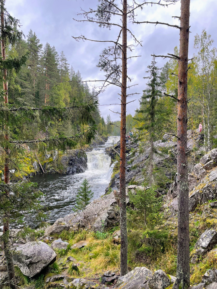 Основной целью нашей поездки была жемчужина здешних мест — мощный равнинный водопад Кивач высотой около 10-11 метров, расположенный на территории одноименного заповедника. Вход платный: 320 рублей.