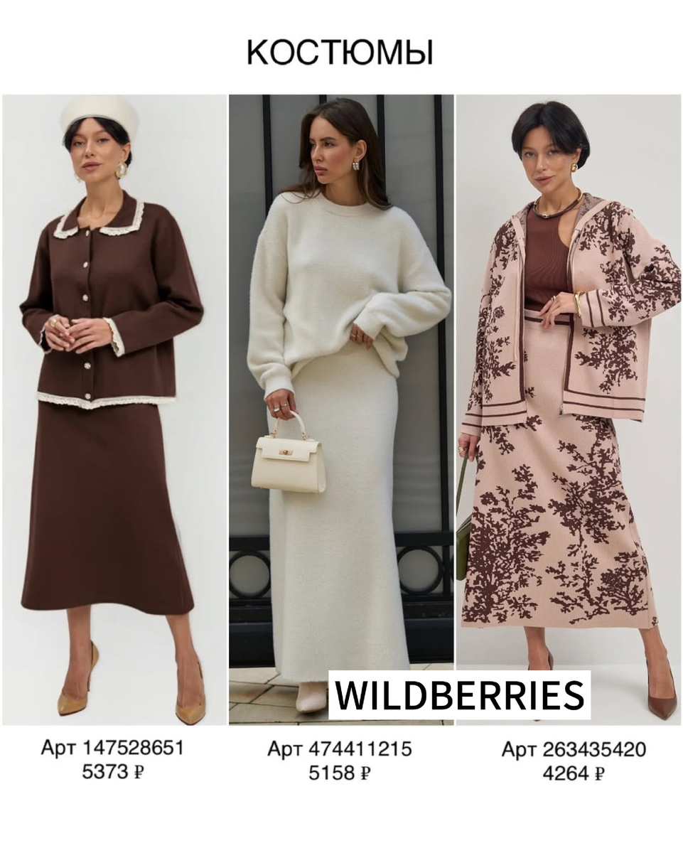 Подборка выстроена строго по порядку, как на фото: карточка за карточкой, в каждой — слева направо и сверху вниз. Получилась цельная зимняя капсула: от костюмов и базовых низов до уютного домашнего комплекта и эффектных верхних слоёв. У каждой вещи — подробное описание и совет стилиста, чтобы вы легко собрали образы на работу, прогулки и отдых.