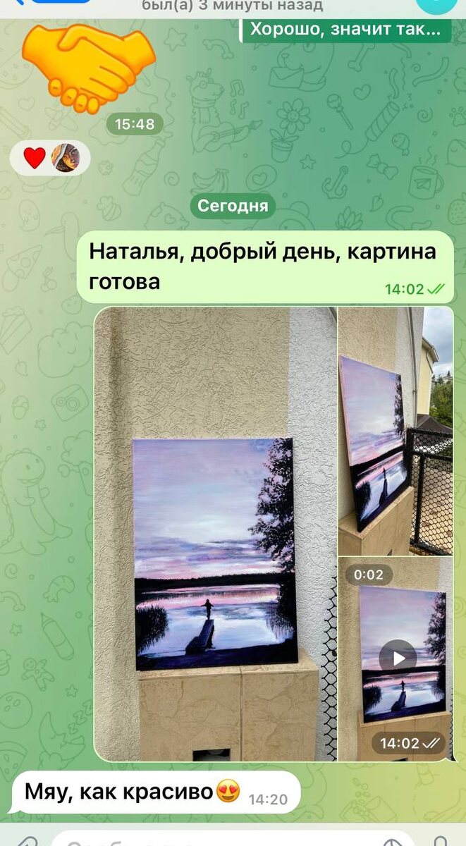 Всегда волнуюсь перед тем как отправить фото готовой картины заказчикам. Всегда радуюсь добрым словам в ответ.