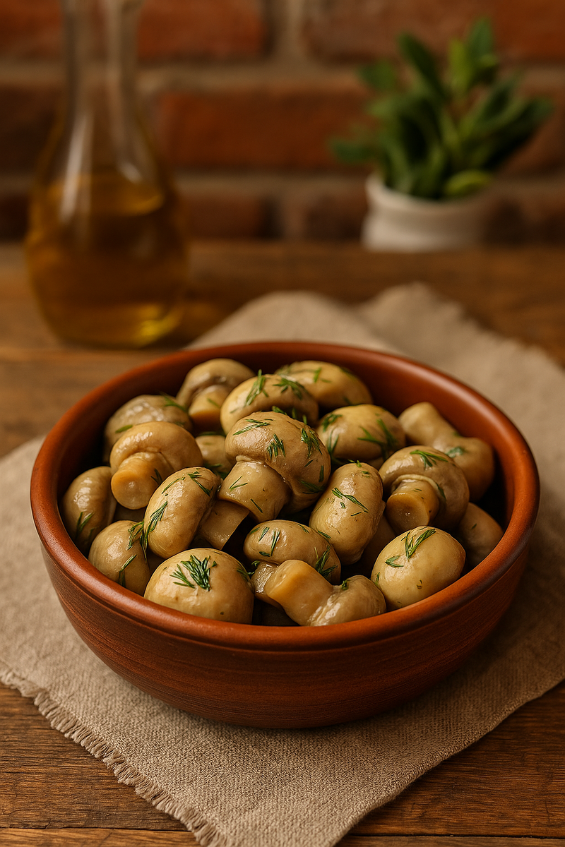Если вы любите маринованные грибы, то наверняка хотя бы раз сталкивались с тем, что домашние почему-то получаются либо пресными, либо слишком кислыми. Но сегодня я покажу идеальный рецепт, где всё сбалансировано: грибы — хрустящие, ароматные, с лёгкой пикантностью, и при этом — бюджетные и простые в приготовлении. Этот рецепт я называю «как из магазина, только лучше» — и это не преувеличение. По вкусу такие шампиньоны ничем не уступают покупным, а главное — вы точно знаете, что внутри: никаких консервантов и «Е-добавок», только натуральные продукты и любовь к еде 💙 Для маринада и грибов: Это — классическая, сбалансированная база. Можно добавить немного кориандра, если любите ароматный акцент, или заменить яблочный уксус на винный — получится чуть мягче и нежнее. 1️⃣ Промываю и очищаю грибы. Если шампиньоны мелкие — не разрезаю, так они получаются красивыми и аккуратными. Если крупные — разрезаю пополам. 2️⃣ Готовлю маринад. В кастрюлю наливаю 1 литр воды, добавляю соль, лавровый лис