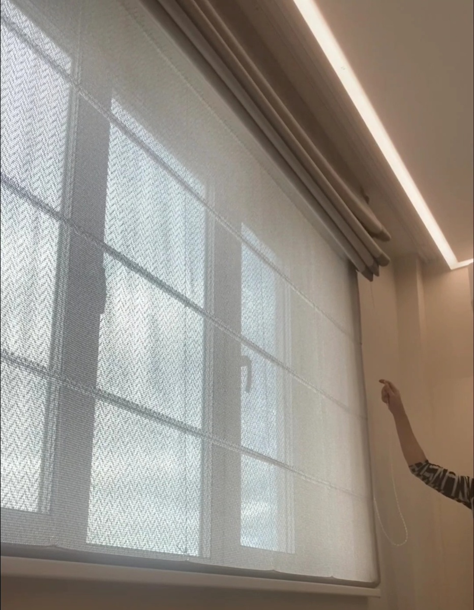 Двойная римская штора с автоматическим опусканием | Шторотерапия пространства
