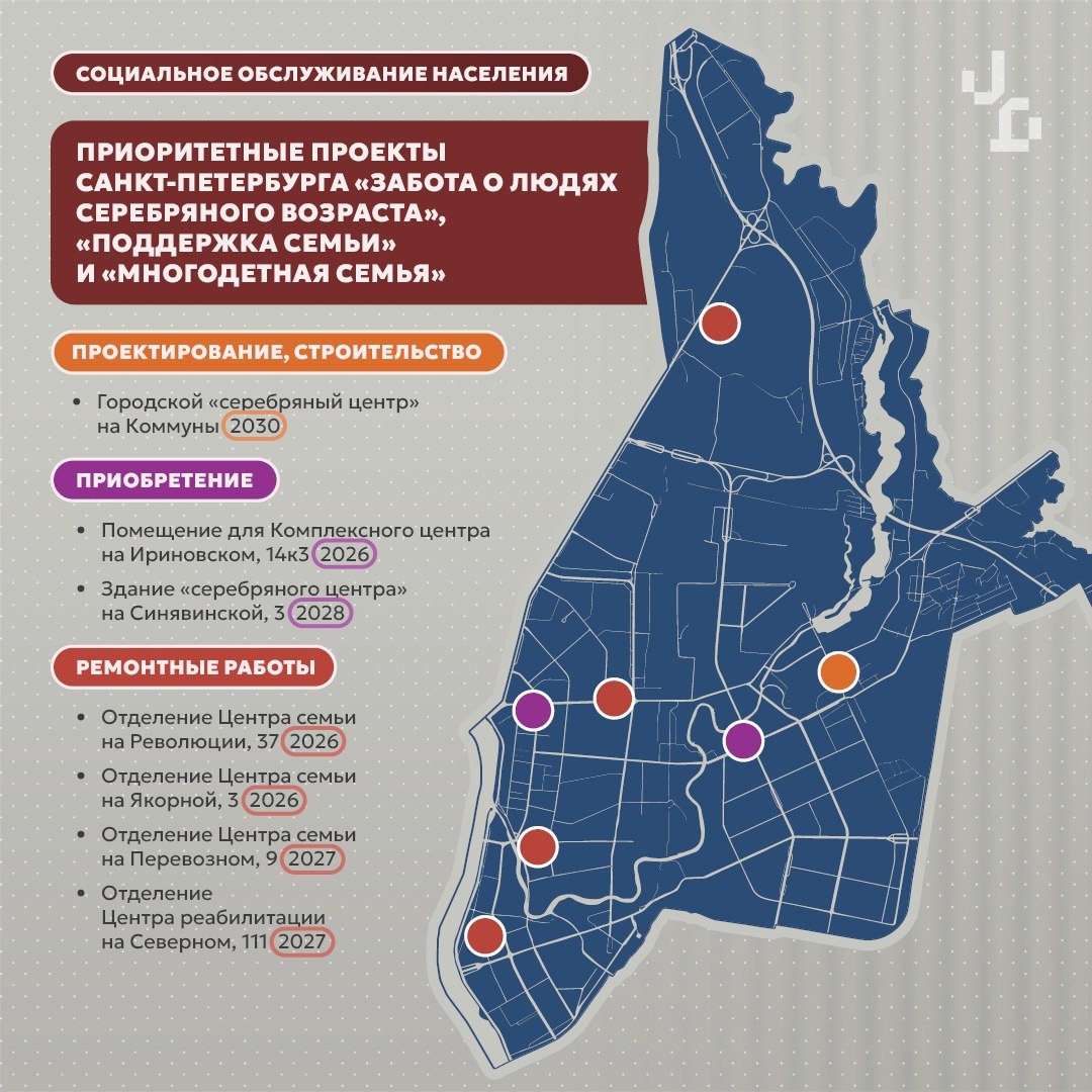 Среди важных задач — создание «серебряных центров» для старшего поколения. Учреждение на Синявинской, 3 будет совмещено с поликлиникой. Ещё один такой центр откроется на улице Коммуны.