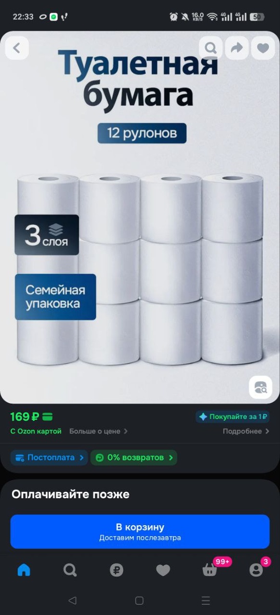 🔥🔥🔥 Туалетная бумага 12 рулонов 3 слоя за 169₽ https://ozon.ru/t/2HKAkKp