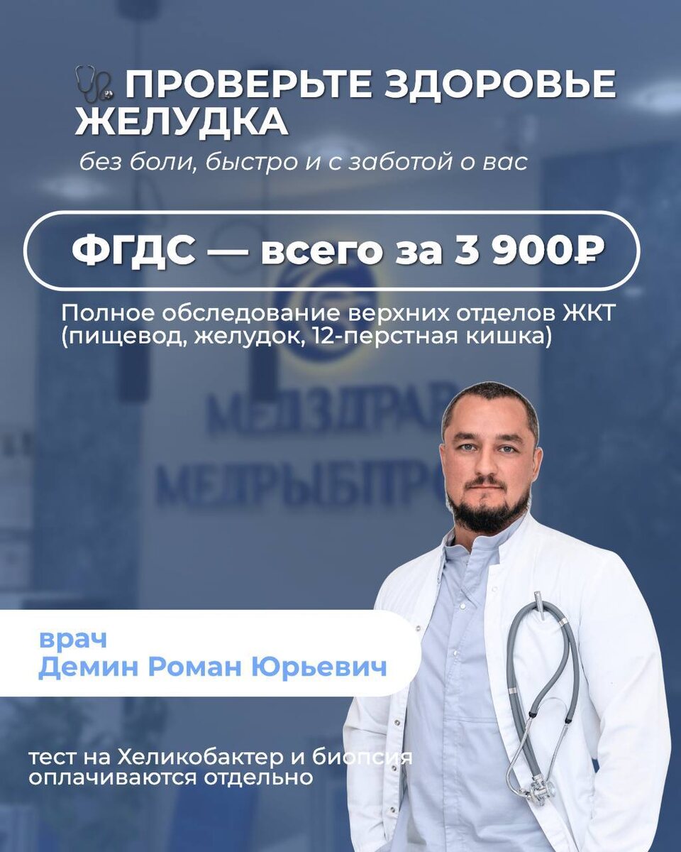 Мы часто заботимся о внешнем, но забываем проверять то, что действительно важно — здоровье внутри. ФГДС помогает вовремя заметить даже небольшие изменения в пищеводе, желудке и 12-перстной кишке — чтобы вы чувствовали лёгкость, энергию и уверенность в своём теле. ✨ Сейчас в «Медздрав» действует акция: ФГДС — всего за 3900 ₽ Обследование проводит врач Демин Роман Юрьевич — с вниманием, аккуратно и в комфортных условиях. 📍 ул. Кронштадская, 4 📞 Записаться можно в директ или по телефону +78127833109 Подарите себе спокойствие и заботу о здоровье 💙