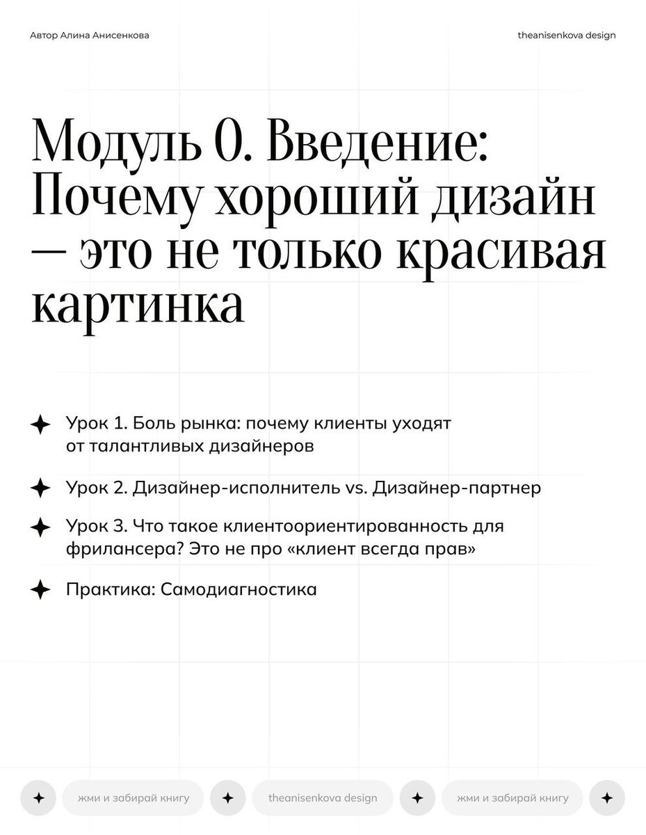 Моя система клиентского сервиса: большая книга-практикум с 5-летним практическим опытом наконец-то готова и доступна вам ➡️подробное содержание — на картинках 💔Если вы устали от хаоса в проектах, бесконечных правок и клиентов, которые «пропадают», или только начинаете свой путь в дизайне и боитесь первых переговоров — этот продукт станет вашей опорой. Он поможет превратить общение с заказчиками в чёткую систему и сделать клиентский сервис вашим главным преимуществом. Я вложила сюда всё, что нарабатывала последние 5 лет: целую библиотеку готовых материалов с шаблонами брифов, коммерческих предложений, правильных писем и скриптов для сложных переговоров. Это настоящая инвестиция в вашу репутацию и доход, которая окупается с первого же нового проекта. ПРИОБРЕСТИ КНИГУ ↖️ Оплатить можно в рассрочку или частями через сервисы Подели и Яндекс Сплит. Сразу после покупки вы получите ссылку на материалы.