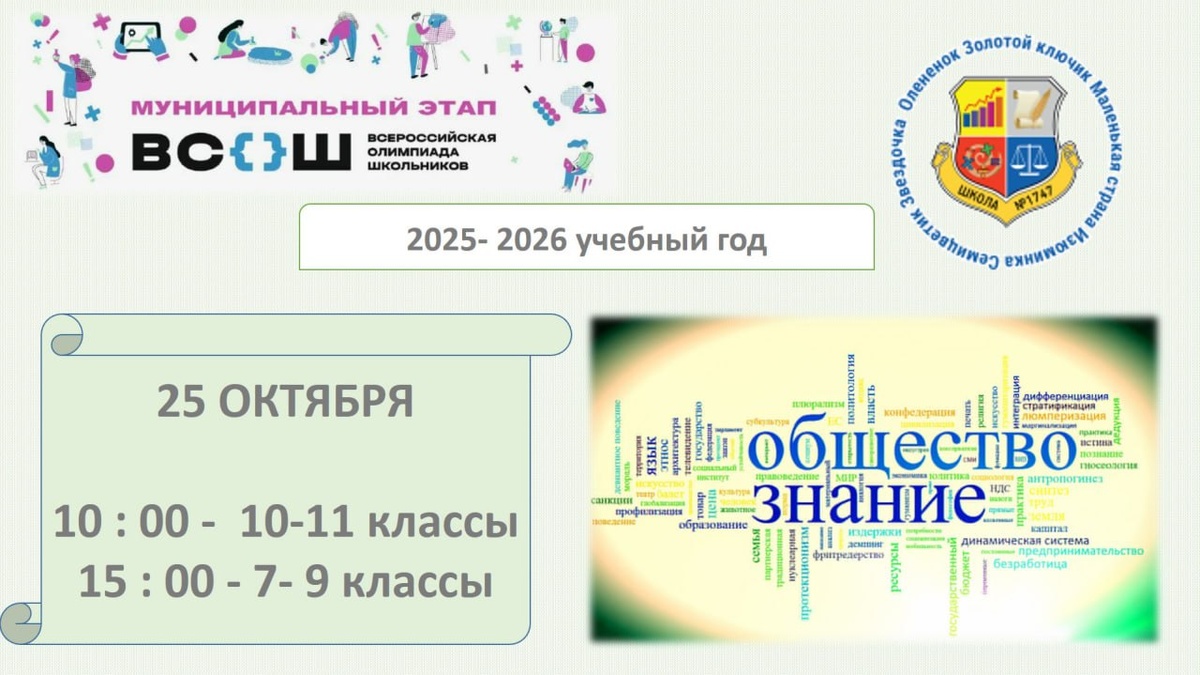 Опубликовано распределение участников на муниципальный этап всероссийской олимпиады школьников в Москве 2025/26учебного года по по обществознанию. Соревнование пройдет 25 октября 2025 года. В 10:00 начнется тур для 10-11 классов и продлится 210 минут. В 15:00 стартует тур для 7-9 классов, на выполнение заданий 7-8 классов будет дано 150 минут, 9 класса – 210 минут.