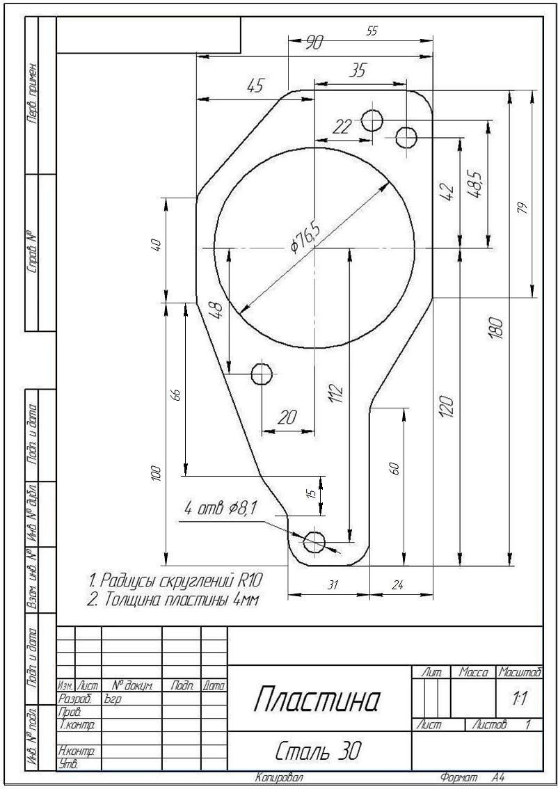 Чертёж пластины для установки стартера на мотоциклы Урал , Днепр .