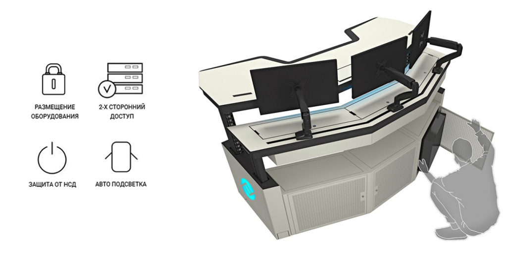 В современном мире вопросы безопасности приобретают первостепенное значение. Особенно актуально для критически важных объектов, оснащенных диспетчерскими пунктами, операторными залами или ситуационными центрами мониторинга. Доступ посторонних лиц к информации, содержащейся в системных блоках и серверных устройствах, должен быть исключен. Физическая защита оборудования диспетчерских столов должна обеспечивать защиту от несанкционированного доступа (НСД) с использованием стандартных инструментов. Как же обеспечить сохранность данных и оборудования? Во-первых, благодаря конструкции диспетчерских столов серии «ТЕХНОКОНСОЛЬ» их невозможно вскрыть обычными инструментами. На поверхности нет видимых болтовых и резьбовых соединений, а значит и получить доступ к оборудованию с помощью подручных средств не представляется возможным. Кроме того, для удобного доступа к внутренней системе, все открывающиеся части пульта оснащены компрессионными замками, которые можно открыть с помощью индивидуального