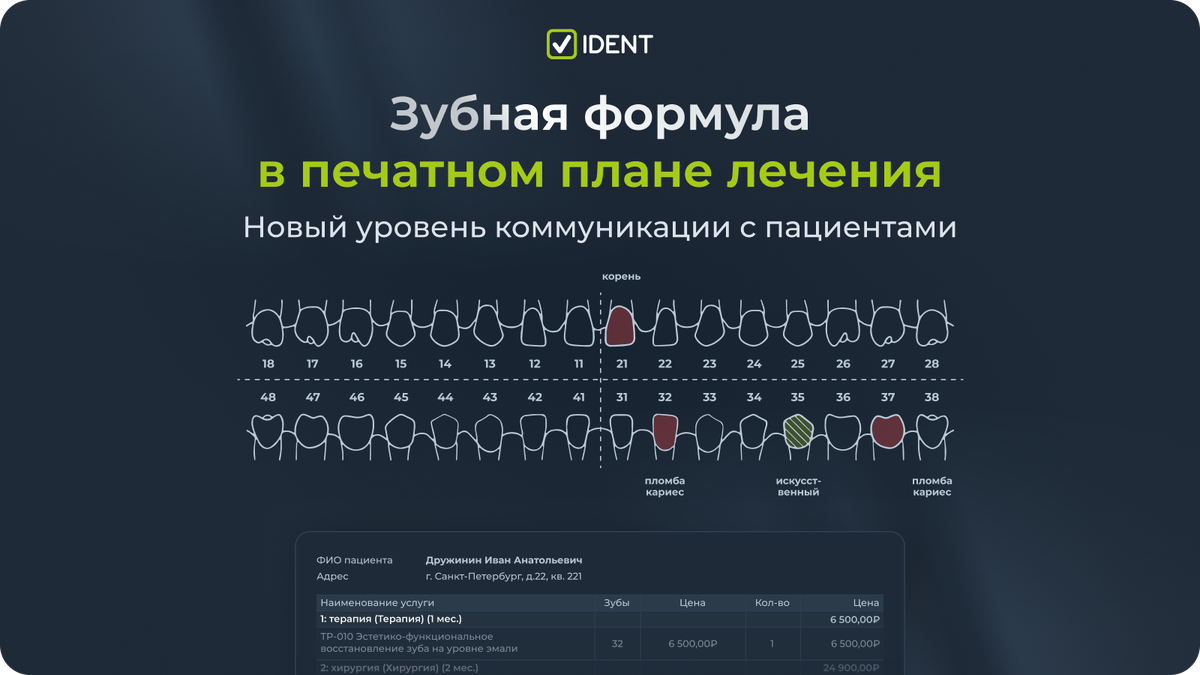 🦷 Зубная формула прямо в печатном плане лечения — новый уровень коммуникации с пациентами!