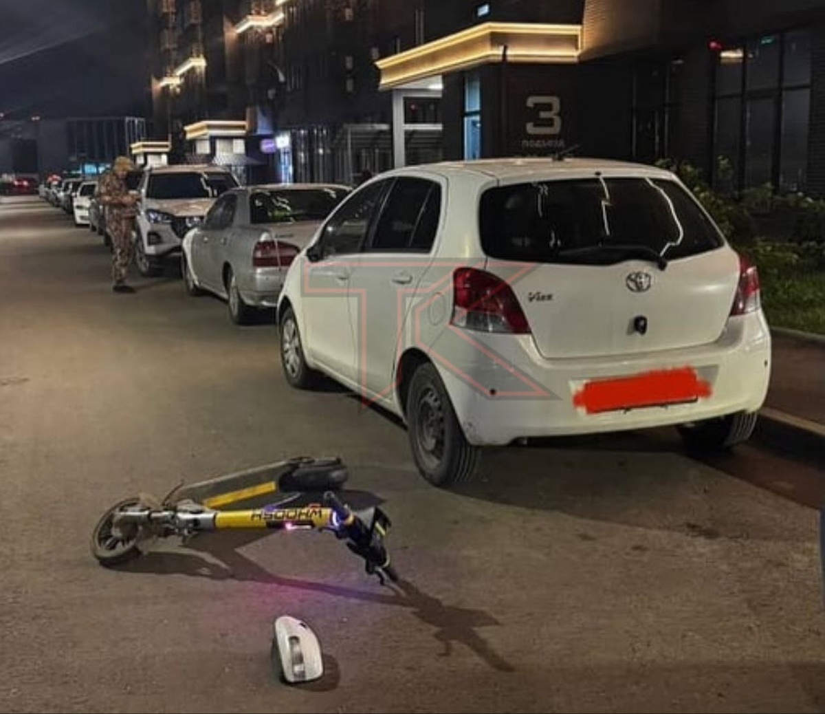 Самокатный тандем влетел в припаркованную машину во дворе ЖК на Западном обходе