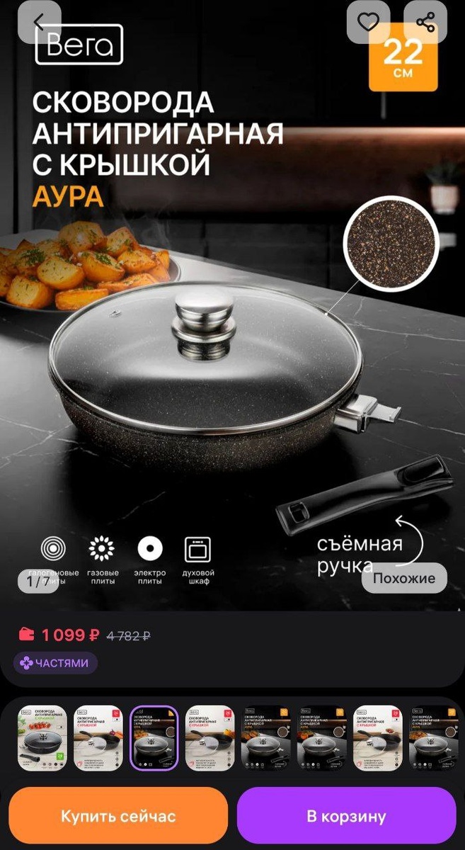 🔥Сковорода антипригарная с крышкой со съемной ручкой 22 см за 1099₽ https://www.wildberries.ru/catalog/497446265/detail.aspx?size=691599036 ➕ 200₽ за отзыв ❗