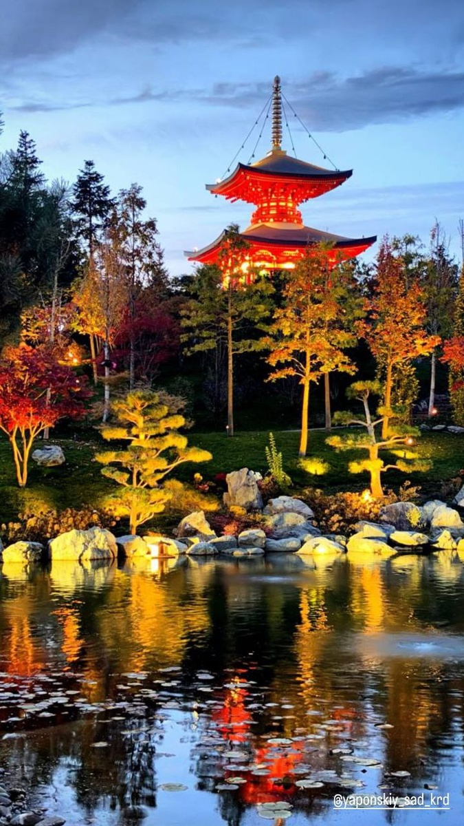 Японский сад и его вечерний свет напоминают о мимолётности всего — как падающий лист, скользящий по воде...