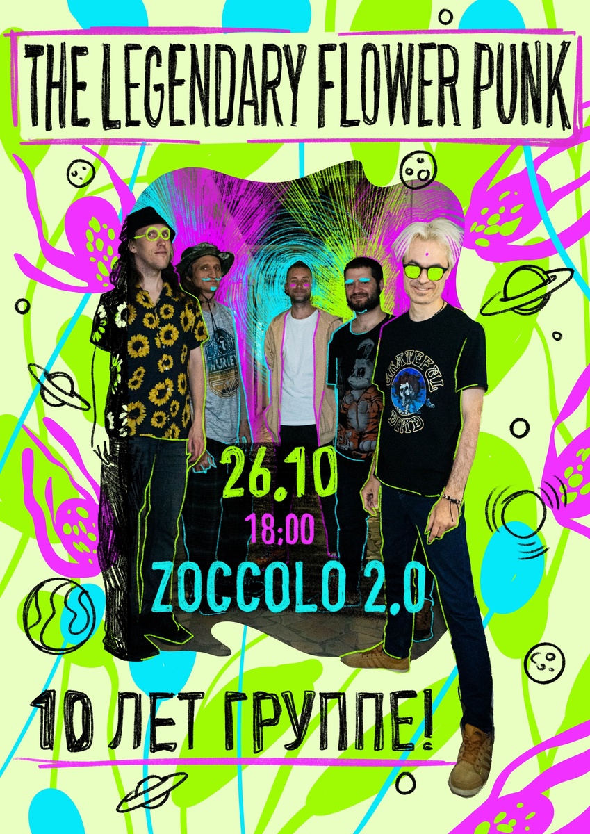 Юбилейные шоу станут редкой возможностью услышать The Legendary Flower Punk в полном составе: шестеро музыкантов, расширенный инструментальный сет и приглашённые гости.