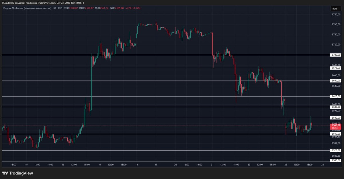 ❓ Что жду? Куда идет рынок? 👉 Сегодня весь день рынок стоял в боковике и особо никуда не шел. Виной тому завтрашняя ставка, перед которой традиционно рынок стоит в боковике. Про ставку завтра выложу свое мнение со всеми нюансами. Если же говорить про технику, то в моменте рынок находится достаточно низко + на уровне поддержки, а также сверху остается НЕ закрытый гэп, который конечно не обязан закрываться, но по статистике почти всегда закрывается. ✅ Поэтому отсюда вывожу, что далее скорее всего будет рост, к 2600, а там дальше уже будем смотреть по факту. Так по большому счету завтра все зависит именно от ставки. Она и будет определять ключевое движение, а значит смотреть на технику сейчас бессмысленно. Всем замечательного вечера! 🤝
