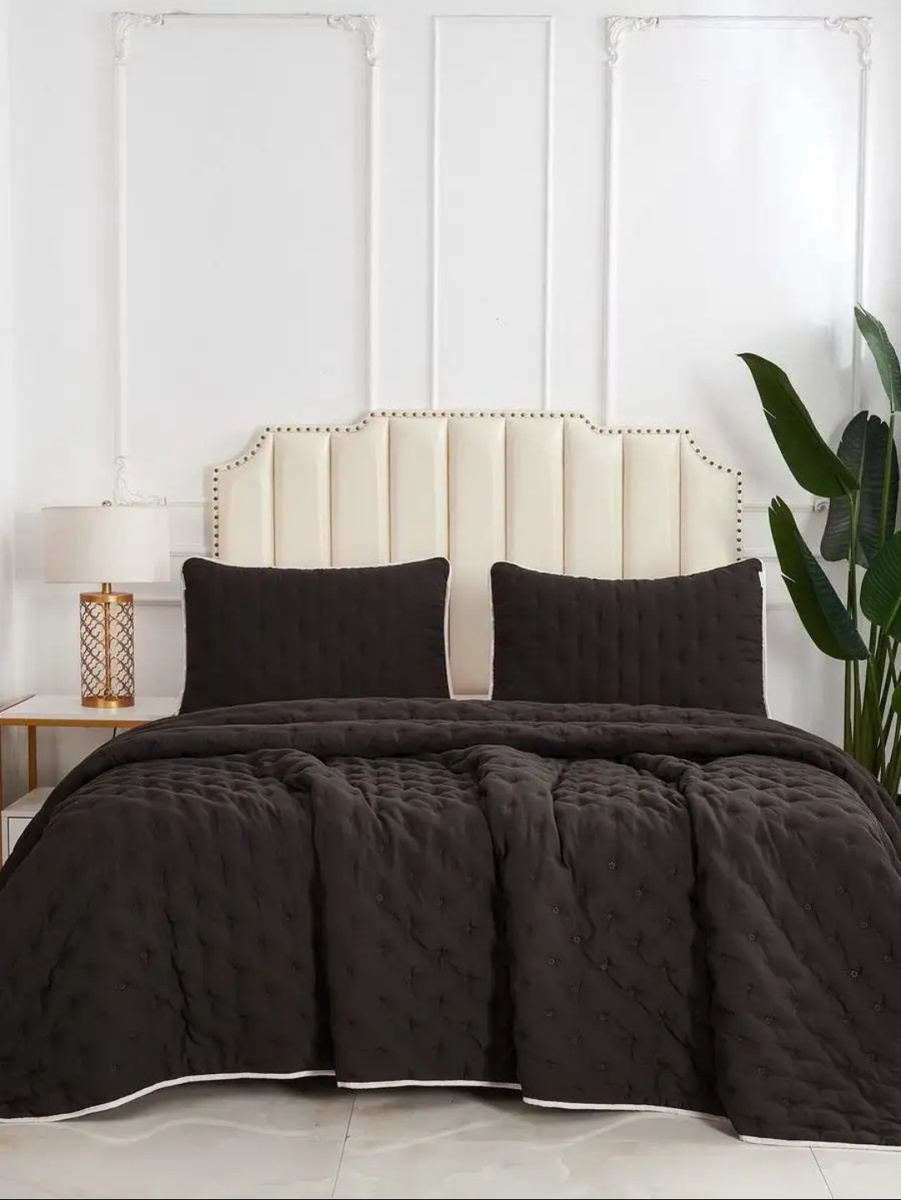 Представьте себе мягкий вечер, вы устраиваетесь на диване с чашкой чая, а вас окутывает невероятно нежное покрывало. Его стеганая текстура сразу привлекает взгляд, добавляя интерьеру изысканности и дороговизны. Оно не просто лежит, а именно украшает пространство, становясь центральным акцентом в спальне или гостиной. А в комплекте идут милейшие декоративные наволочки с «ушками», которые завершают образ уютного гнездышка.