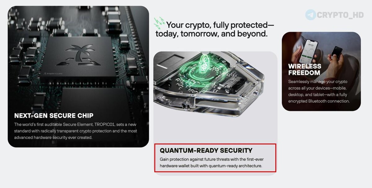 😏 В Trezor готовятся к постквантовой эпохе. Производитель аппаратных кошельков представил новую модель Trezor Safe 7, заявив, что устройство защищено даже от угроз постквантовых атак. Ранее: - отчет a16z - квантовый прорыв - взлом криптозащиты - квантовая угроза - заморозка BTC - мнение CEO Tether Crypto Headlines