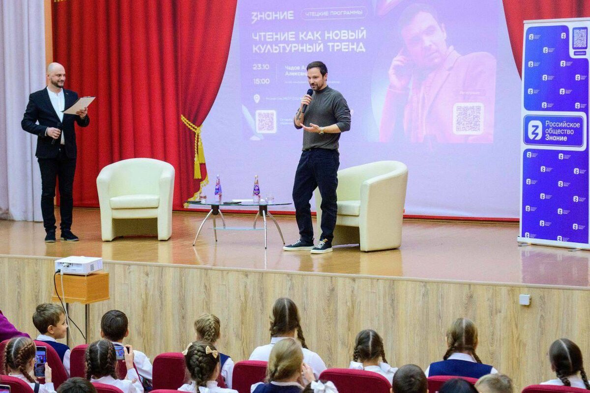В школе №15 Йошкар-Олы прошла встреча с лектором Российского общества «Знание», актёром и кинорежиссёром Алексеем Чадовым. Темой открытого диалога со школьниками стала «Чтение как новый культурный тренд». 📸 Фото: пресс-служба главы РМЭ