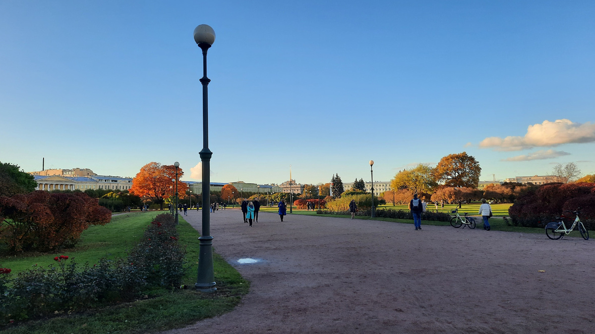 Мой традиционный городской осенний маршрут: Марсово поле и окрестности, Михайловский и Летний сады. На Марсовом поле есть самый главный клён для фотосессий. Остальные идут прицепом. Мойка. К Спасу на Крови. И в Михайловский сад. Розы ещё цветут. Чугунный мостик Росси 1825 года. Между прочим, единственный в Санкт-Петербурге мост с подлинными чугунными арочными конструкциями. Пусть будет хоть немного полезной информации среди бесполезных с практической точки зрения фотографий. Мост через протоку, соединяющую два пруда сада. На заднем плане Михайловский замок, где замочили Павла Первого. Это тоже полезная информа