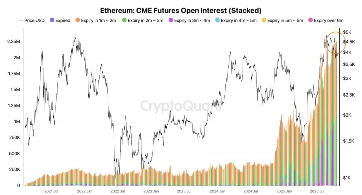 Общий открытый интерес во фьючерсах на крипту на бирже CME обновил рекорд, несмотря на коррекцию на рынке — данные CryptoQuant