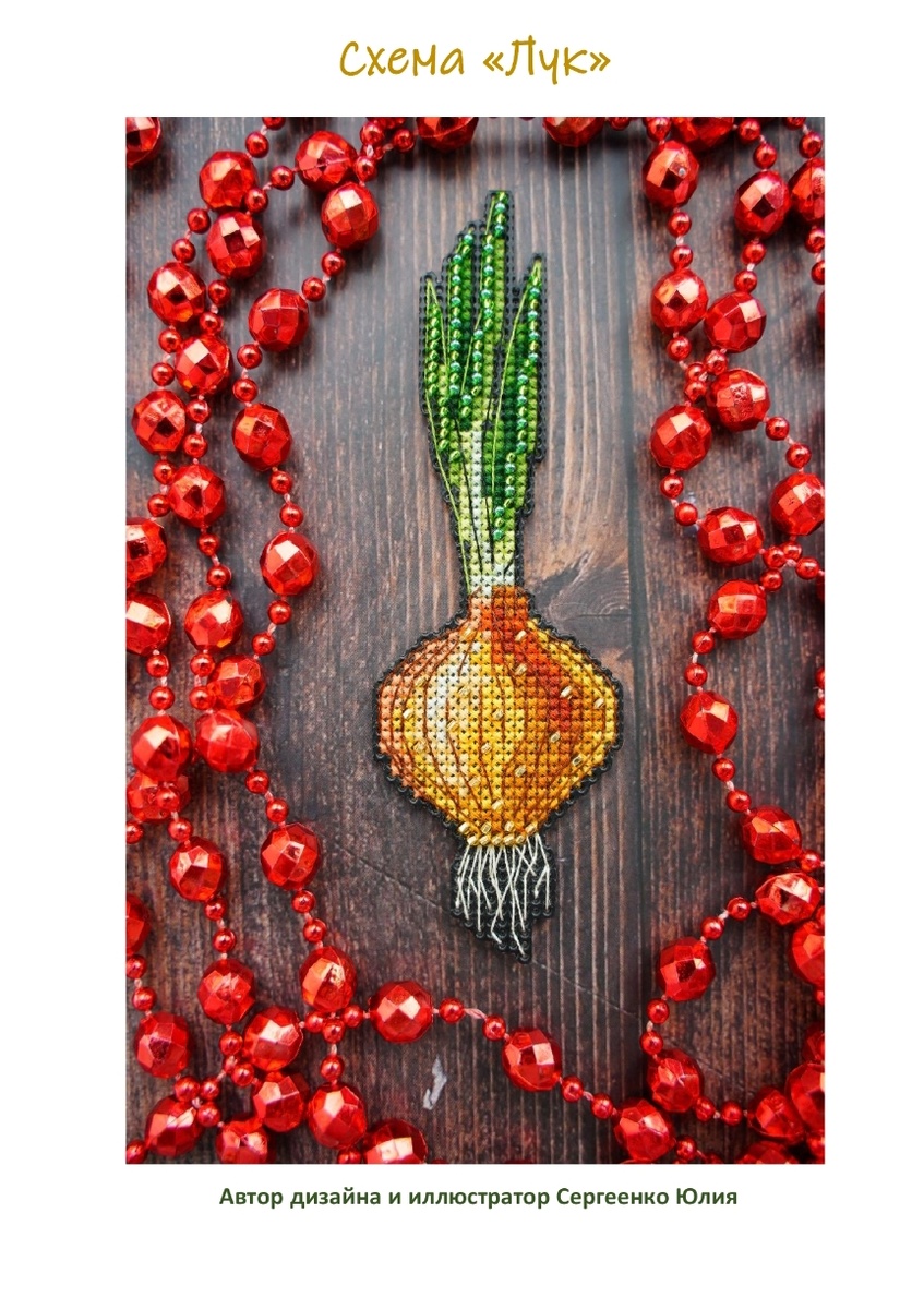 "Кто его раздевает тот слёзы проливает." Знакомая всем загадка из детства. Не думала я,что вспомню ее когда буду вышивать предпоследний дизайн в СП "Со вкусом" 2 сезон от Юлии Сергеенко "Лук". Размер в стежках: 21 на 69 крестиков; Размер в см: 4 на 12,6 см ( для Аиды 14 каунта ); Палитра мулине: DMC (15 цветов); Бисер: Preciosa (3 цвета); По Саге: 421 крестик,496 стежков бэкстича, 100 штук бисеринок (по марафону 769 крестиков). В СП у меня осталось два овоща "Лук" и "Помидор". Выбор на "Лучок" пал не случайно, дизайн не большой и вышить его я планировала одним днём, чтобы получить последнюю схему и спокойно уехать в отпуск с ней. Но не всегда получается так как мы планируем. Полна энтузиазма я приступила к работе прям вечером,когда дочь укладывалась спать,а я сидела рядом с ней. В помощь мне был фонарь. Первые крестики сделаны. Дочь уснула и я перебралась на кухню спокойно повышивать и ...отключили свет 🤦 Я решила так просто не сдаваться и взяв фонарик посильнее продолжи