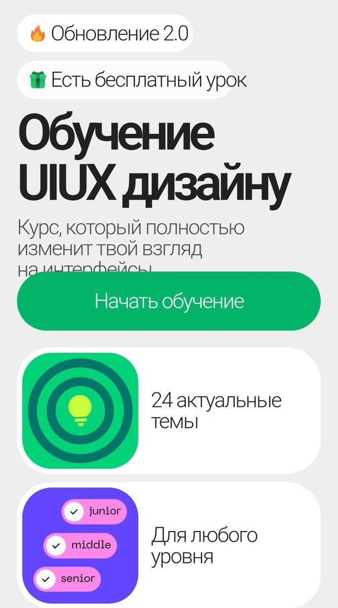 Онлайн-школа выпустила лендинг курса по UI/UX-дизайну, на котором все элементы страницы поехали по своим делам
