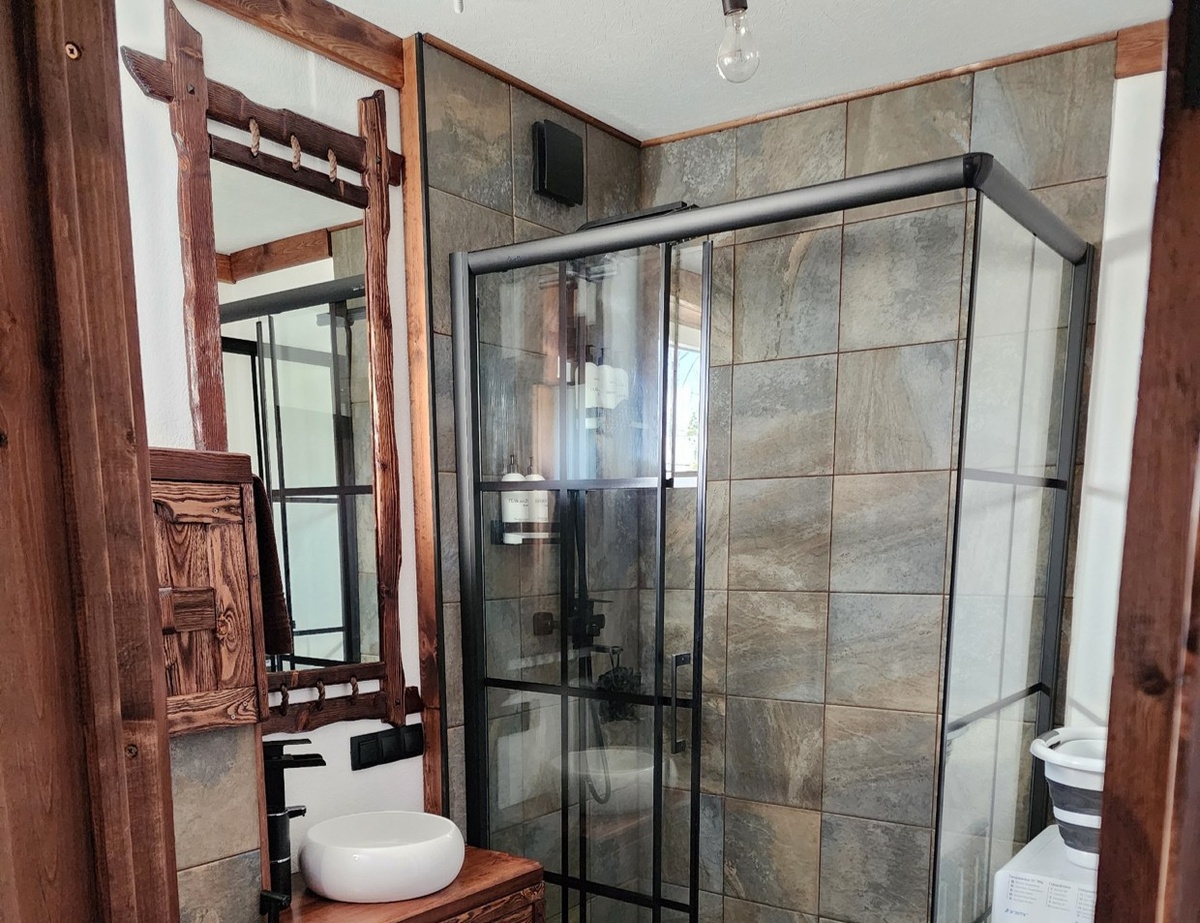 Ну что, друзья, расскажу вам, как мы зеркало делали, ведь «без зеркала в ванной – не жизнь, а сплошное недоразумение». Особенно когда ты уже построил тумбу с раковиной-чашей, а отражение всё ещё где-то в облаках. Ну или в ладошках с водой) Эхх, придется вновь ускоряться! Зазеркалье начинается здесь Первым делом я заказала зеркало на маркетплейсе. Высота – 100 см, ширина – 40 см. Цена – 1700 рублей. Как думаете, это дорого? Я бы и дороже купила, лишь бы не смотреться в отражение в дверце душевой кабинки! Но на тот момент это было самое бюджетное зеркало заданного размера в выбранном интернет-магазине. Зеркало шире или выше нам не подходило по габаритам. Рама из досок и веревки Но просто повесить зеркало – это не наш стиль. Мы же семейка на все руки! Нашли в запасах остатки сосновых досок, немного толстой веревки – и понеслась. Муж обработал дерево под старину: сделал топором неровности, забрашировал. Сверху и снизу добавил 2 дополнительные декоративные планки и связал их с основной р