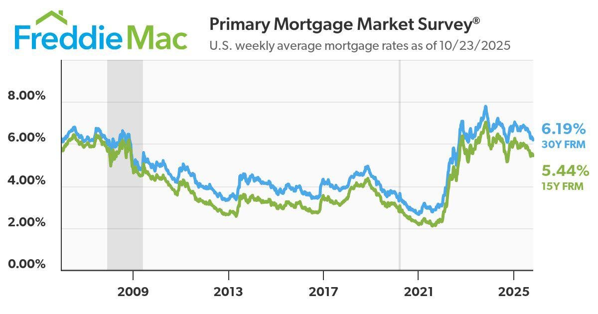 🔸Ипотечные ставки в США упали до 6,19%, что является самым низким уровнем в 2025 году