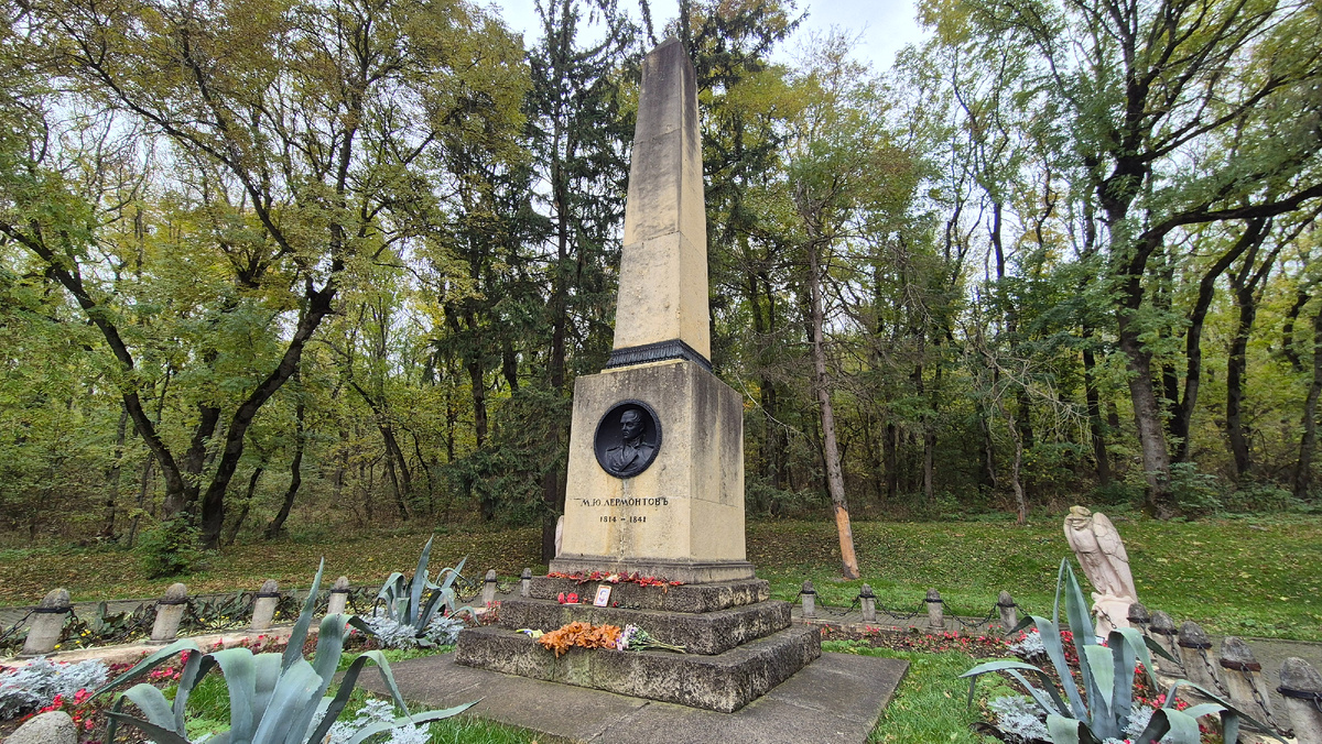 Всем привет! Прекрасный и очень уютный город Пятигорск, передаю тебе привет и обещаю вернуться! Нахохлившиеся грифы, обернувшиеся через плечо назад, охраняют место гибели М. Ю. Лермонтова. Великий поэт словно искал смерти. В 1841 году здесь на склоне горы Машук прозвучал роковой выстрел. Памятники места дуэли и гибели М. Ю. Лермонтова расположены рядом. К ним можно приехать на машине. Город Пятигорск вплотную подступил к памятному месту. Открытие памятного обелиска прошло без помпы - шла Первая Мировая война, да и архитекторы не нашли общего языка. Согласно одной из легенд, прозвучавшей из уст экскурсовода, столбики напоминают пулю, поразившую поэта. Когнитивное искажение... Во времена Лермонтова пули были круглыми. Место само по себе памятное для людей становится также местом нещадных выдумок гидов, пытающихся создать уникальность свой экскурсии. Поверьте, ребята, достаточно сухих фактов, чтобы заставить всю группу прочувствовать боль утраты и замолчать в минуте молчания. Здесь красив