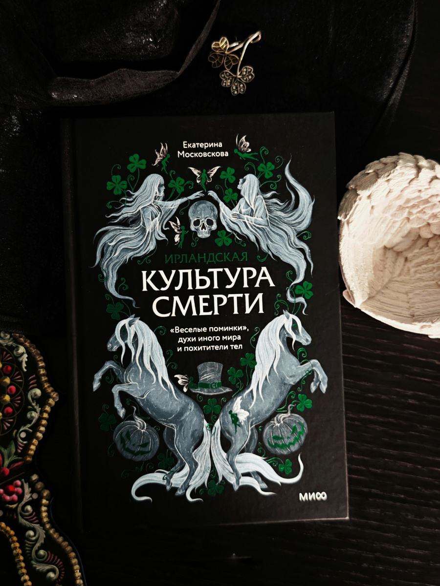Прочла книгу "Ирландская культура смерти", которую написала Екатерина Московскова— гид-экскурсовод, которая живёт в Ирландии и прекрасно знает культуру и людей этой страны изнутри. Книгу не обязательно читать по порядку, а можно выбрать ту главу, которая вам наиболее интересна. Так, здесь есть большой исторический экскурс, где, конечно нашлось место главным ирландским святым — Патрику и Бригитте. Есть глава, посвященная Хеллоуину и его истоку — кельтскому Самайну, которая не лишний раз напомнит, что Хеллоуин — никакой не сатанинский праздник. Есть отдельная глава про ирландских мифических существ, где целый раздел посвящен предвестницам смерти — банши, где вы прочтете о множестве преданий и легенд из различных уголков Ирландии о крике банши, её внешнем виде и значении для местной культуры. Я, конечно, сразу взялась читать главу, которая вынесена на обложку, — "Веселые поминки". Если информация из предыдущих глав — это всё же некое погружение в ирландскую культуру, которое будет особенн