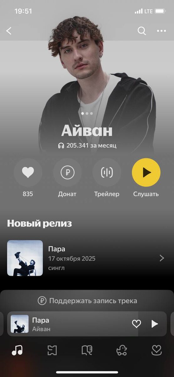 На днях осознал, что прослушивания Айвана перевалили за 200 000 (и это только на Яндекс.Музыке) 🤯 Рад и горжусь каждым треком и работоспособностью Вани и всей команды! Ну и конечно низкий поклон слушателям 🤍 Помню самые первые сниппеты на «Настроение осень» — на карточке было пару десятков тысяч прослушиваний, нервы, куча идей и сомнений, поиски звучания. Тогда мы просто верили, что из этого получится что-то классное. Так и вышло! Айван сейчас показывает хороший рост: релизы, подготовка концертной программы, выступления в разных городах, съёмки — темп только ускоряется. И честно, зная его запал, я уверен — скоро он будет звучать отовсюду! В ближайшее время проведём стратегический созвон и обновим цели на будущий год 💪🏻 Этот пост — знак, что пора заварить себе какао, включить Айвана и закончить этот день на приятной ноте 🕺