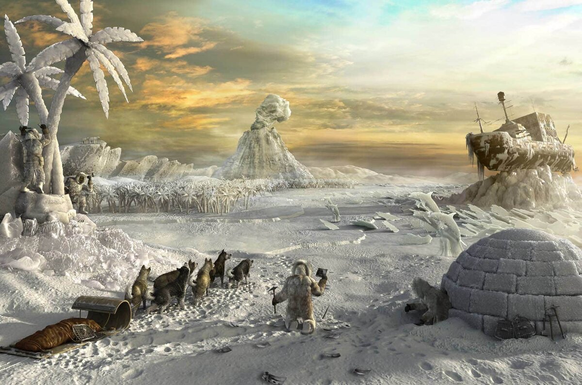 - Изменение ландшафтов: Ледники будут медленно, но неуклонно двигаться, формируя новые ландшафты, вырезая долины и оставляя после себя морены. Большая часть северных территорий будет покрыта льдом.