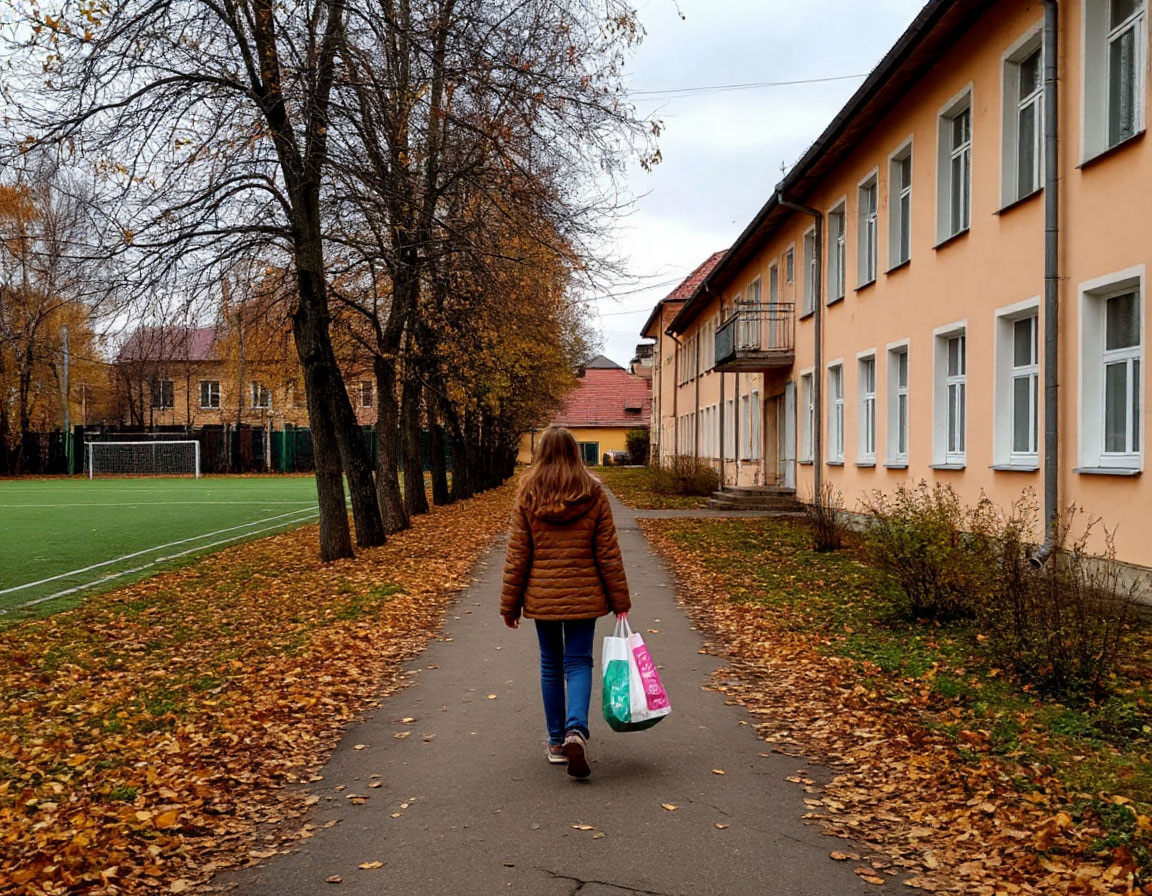 По дороге прошлась мимо школы. Здание старое, но вполне себе обжитое. Увидела аллею деревьев, которую они сажали с классом, новый спортивный уголок, разметку на асфальте перед парадным входом. Здесь проходили все школьные линейки.