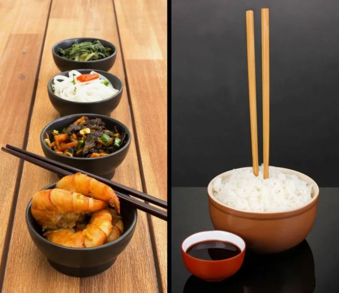 Помню, как в первый вечер в Японии я сидела в маленьком семейном ресторанчике и наслаждалась горячим рисом с лососем. Устала после перелёта, хотелось просто поесть и отдохнуть. Доела примерно половину порции, отложила палочки и, не задумываясь, воткнула их вертикально прямо в миску с рисом. Как мы обычно делаем дома, когда нужно отвлечься на телефон или глоток воды.