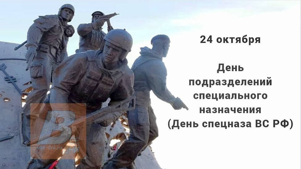 24 октября 2025 года - День подразделений специального назначения (День спецназа ВС РФ). Подробнее: https://www.vse-dni.ru/2022/10/den-specnaza-vs-rf.html