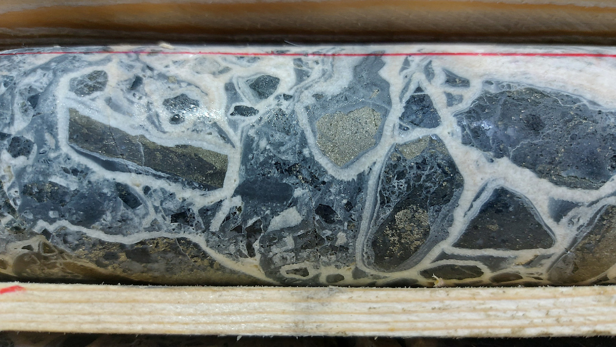 Предлагаю посмотреть на некоторые картинки, которые получаются на срезе пород в керне при его выбуривании буровым станками. Эти картинки также из Забайкалья. Первые два образца, это гидротермальные брекчии на анкерит-кварц-карбонатном цементе с гнёздами золотистого (соломенно-жёлтого) пирита. Разбитые обломки пород сцементированы этим материалом. При это смотрится красиво! Следующий образец из дайки мелкопорфировых лампрофиров. В центре виден изогнутый червячок. На самом деле это вытянутый кристалл плагиоклаза. В центре образца монцонит-порфира виден закрученный лепесток вытянутого кристалл калиевого полевого шпата в виде лопасти самолёта. Это произошло при неравномерном вихревом движении магмы. В этом образце разбитый тектоникой кварц-карбонатный прожилок был сцементирован новым составом предположительно кальцит-анкерит-глауконитового состава. Прожилок грязно-зелёного цвета с белыми фрагментами смотрится очень необычно! В этом образце порфировидного гранита голубовато-серые мин