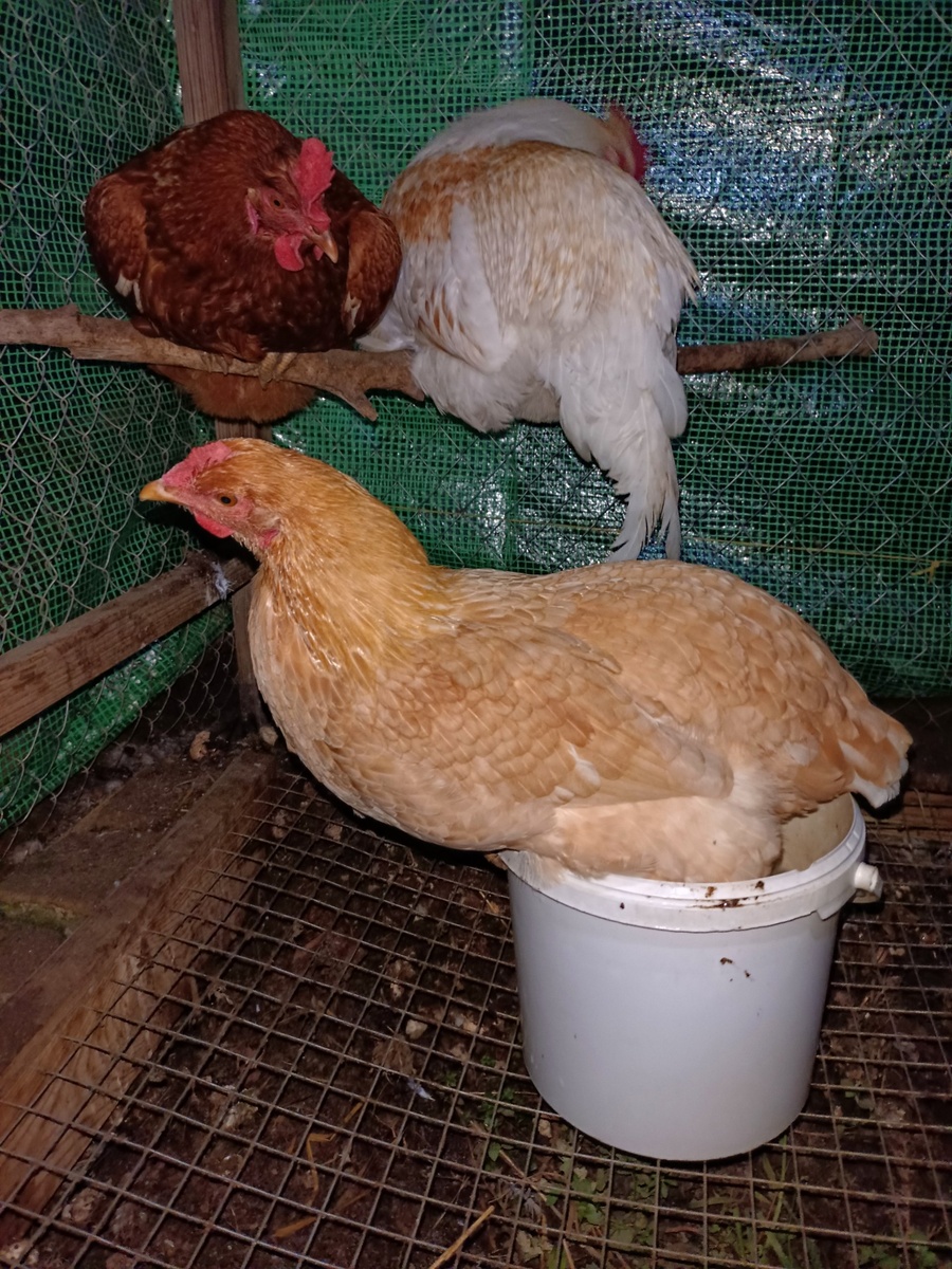Теперь я понимаю, почему каждое утро нахожу ведро с водой лежащим на бок. Думал выпивают всё до последней капли. Оказывается Мандаринка решила, что это её жёрдочка.