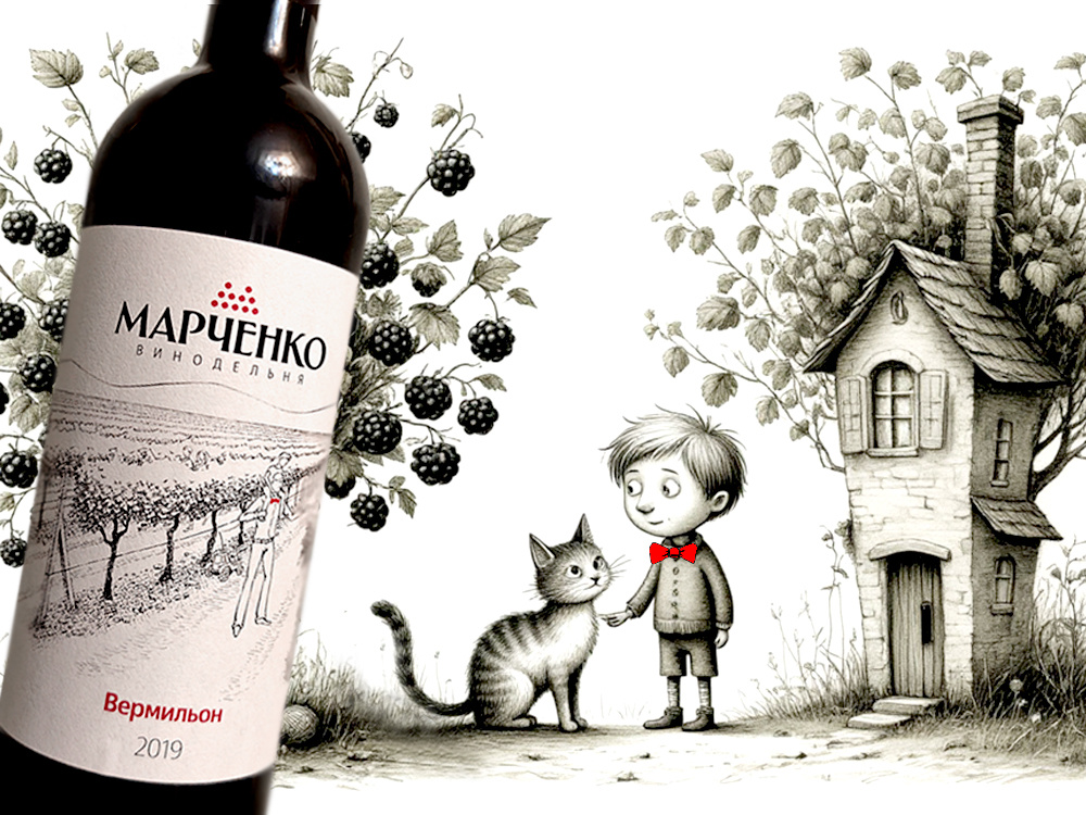 На винодельне сей Вермильон обошёлся мне в 1000 рублей. В магазинах именно его я не встречал, но другие вина Марченко попадаются мне примерно за эту цену, плюс-минус пару сотен. Если вы читали про мой визит в хозяйство Василия Александровича, то помните, что Марченко больше агроном чем винодел, лицензию на производство и реализацию вина получил лишь в 2019 году. Получается, что мой Вермильон - первый официальный релиз винодельни.