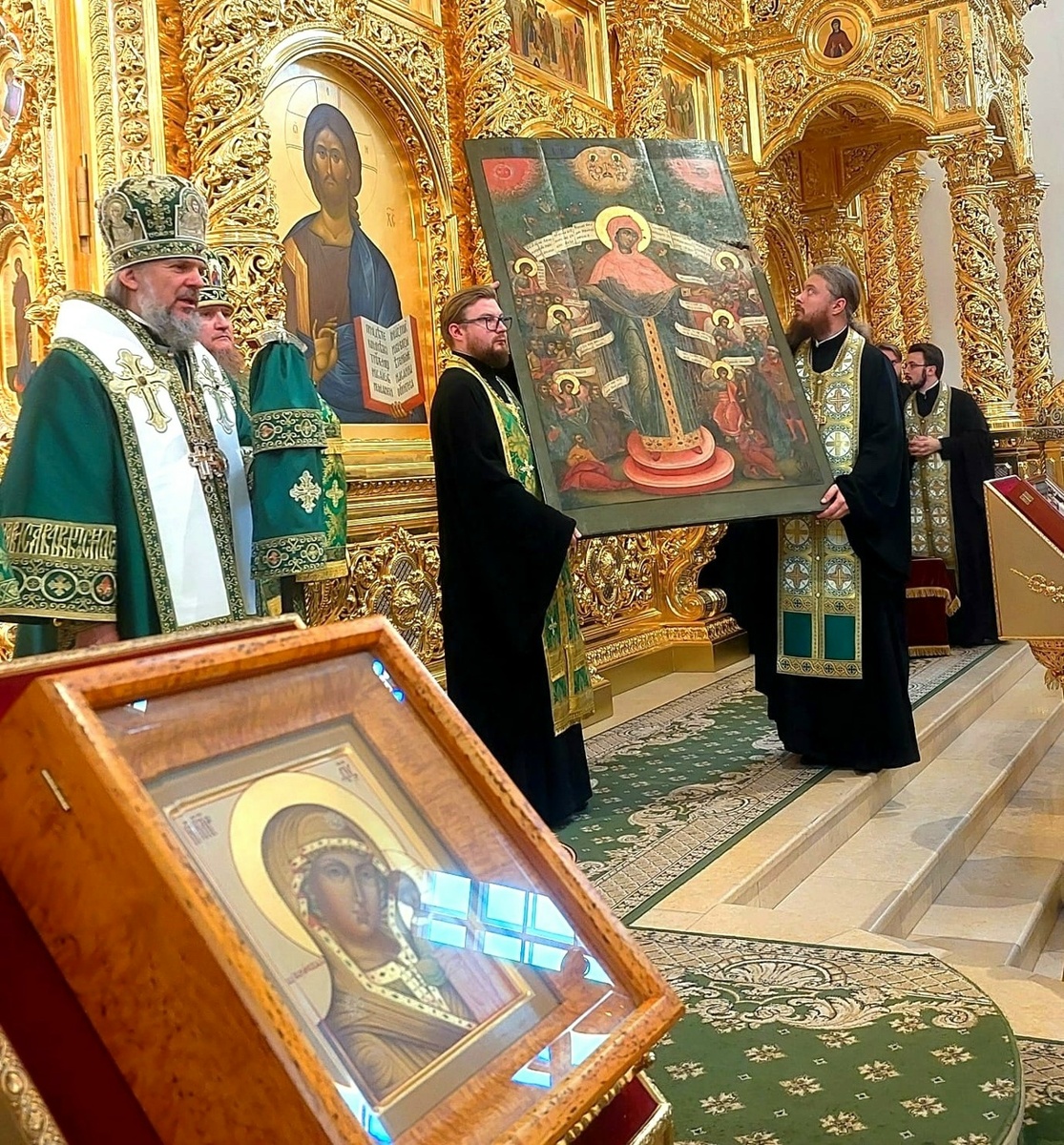 Сегодня, 23 октября, в день памяти своего небесного покровителя – преподобного Амвросия Оптинского – митрополит Тверской и Кашинский Амвросий совершил Божественную литургию в Спасо-Преображенском кафедральном соборе Твери. На праздничной службе вместе с архипастырем молились духовенство и игуменьи женских монастырей Тверской епархии, а также почётные гости, в том числе глава Ржевского муниципального округа. Роман Крылов присутствовал на службе далеко не случайно: дело в том, что в этот день Ржев вновь обрёл свою святыню – икону Божией Матери «Всех скорбящих Радость», которая в своё время находилась в Иверской часовне, у подножия Соборной горы (построена в 1758 году, закрыта в 1930-м, разрушена в 1957-м). Вот как об этом событии сказал сам владыка: – Мне хотелось бы ещё раз поблагодарить Бога за то, что ныне появилась уникальная, удивительная возможность вернуть древнюю святыню, находившуюся некогда на благословенной земле города Ржева – по просьбе полномочного представителя Президент