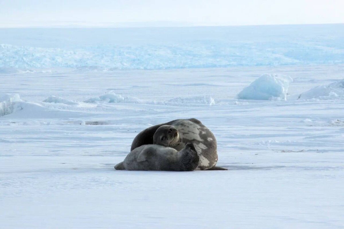 На архипелаге Хасуэлл у российской станции «Мирный» ученые заметили первых в этом сезоне детенышей тюленя Уэдделла. Биолог Юрий Мизин сообщает, что малыш и его мама чувствуют себя отлично: самка воспитывает и играет с тюлененком. Наблюдения за этими обаятельными и миролюбивыми животными — важная часть изучения экосистемы Антарктики.
