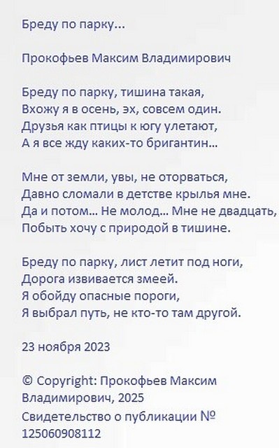 Автор стихов - Максим Прокофьев - поэт Международного интернет-объединения художников и литераторов с ограниченными возможностями здоровья «Грани преодоления».