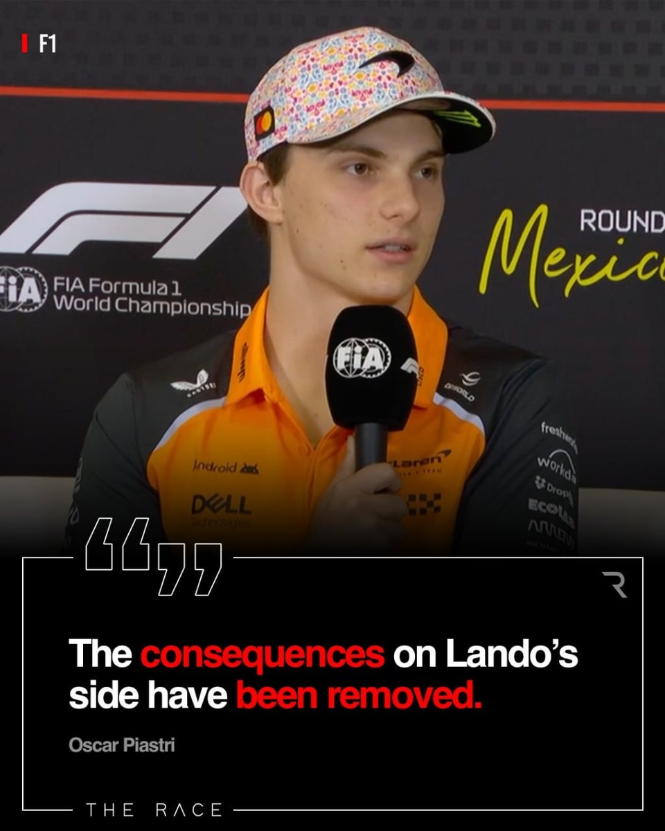 Пиастри признал вину за аварию в спринте и сказал, что теперь они начнут с чистого листа Оскара спросили: Вы уже разобрали спринт в Остине? Будут ли какие-то последствия для вас или Ландо в этот уикенд? 🗣 Пиастри: Думаю, в инциденте спринта есть определённая доля моей ответственности, и этот уикенд мы оба начинаем с чистого листа. Лично я это понимаю так: "Мы с помощью контактов на трассе отобрали у друг друга примерно равное количество очков, поэтому начинаем с чистого листа" В итоге Оскар подтвердил, что все внутрикомнатные "привилегии", полученные за действия Норриса в Сингапруе, были сняты одним спринтом.