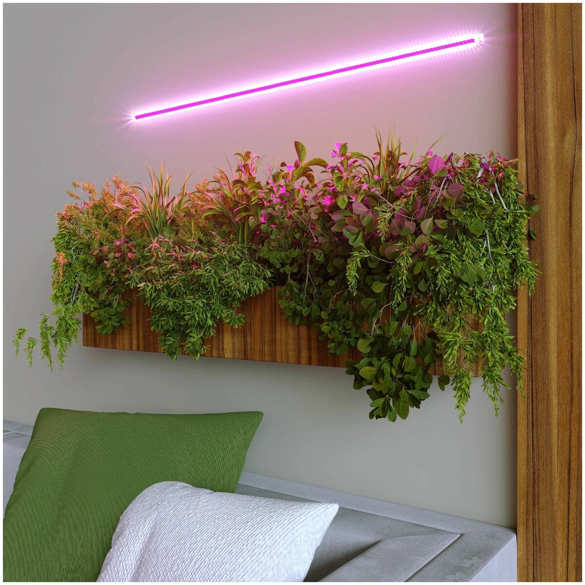 - Линейные лампы — для длинных подоконников и стеллажей;