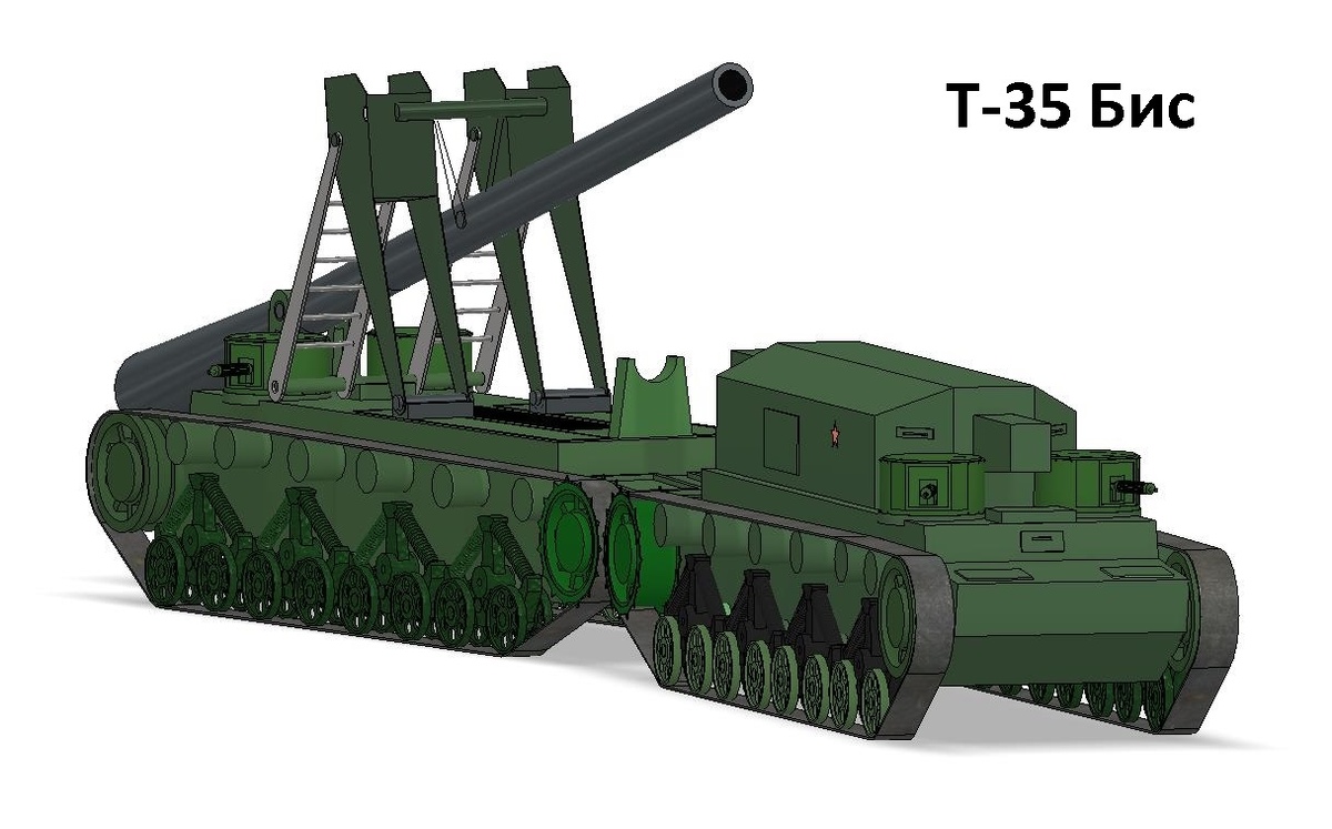 Существующее шасси не потянет такую дополнительную нагрузку. Поэтому придется спроектировать шасси типа сочлененного вездехода. Отсюда название проекта – Т-35 Бис.