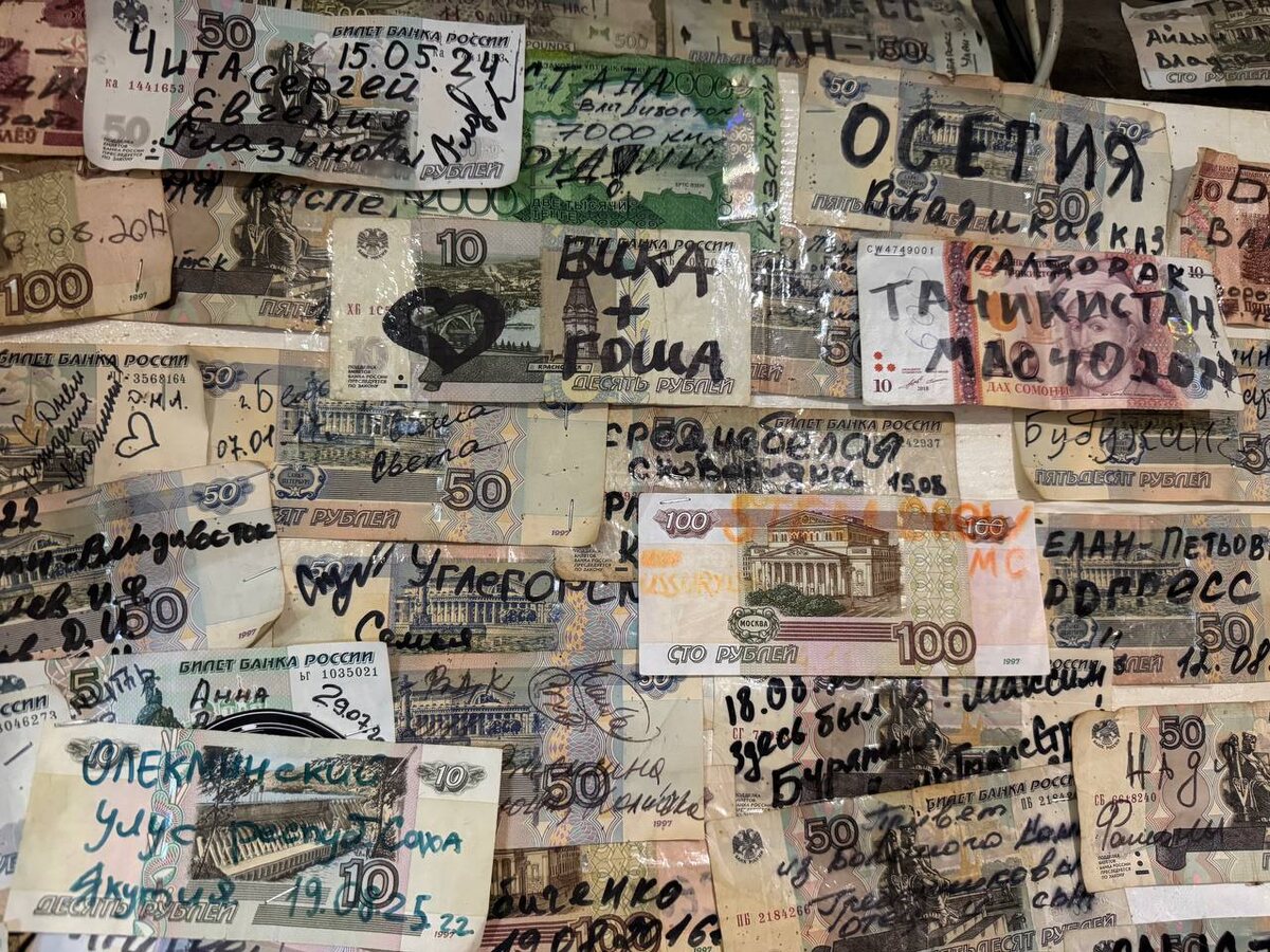 К стене купюры крепили степлером. Каждая - с именем, с датой, с какой-то личной историей. Люди хотели оставить след. Верили, что этот след когда-то увидит другой путник и вспомнит, что он не один на этой дороге.