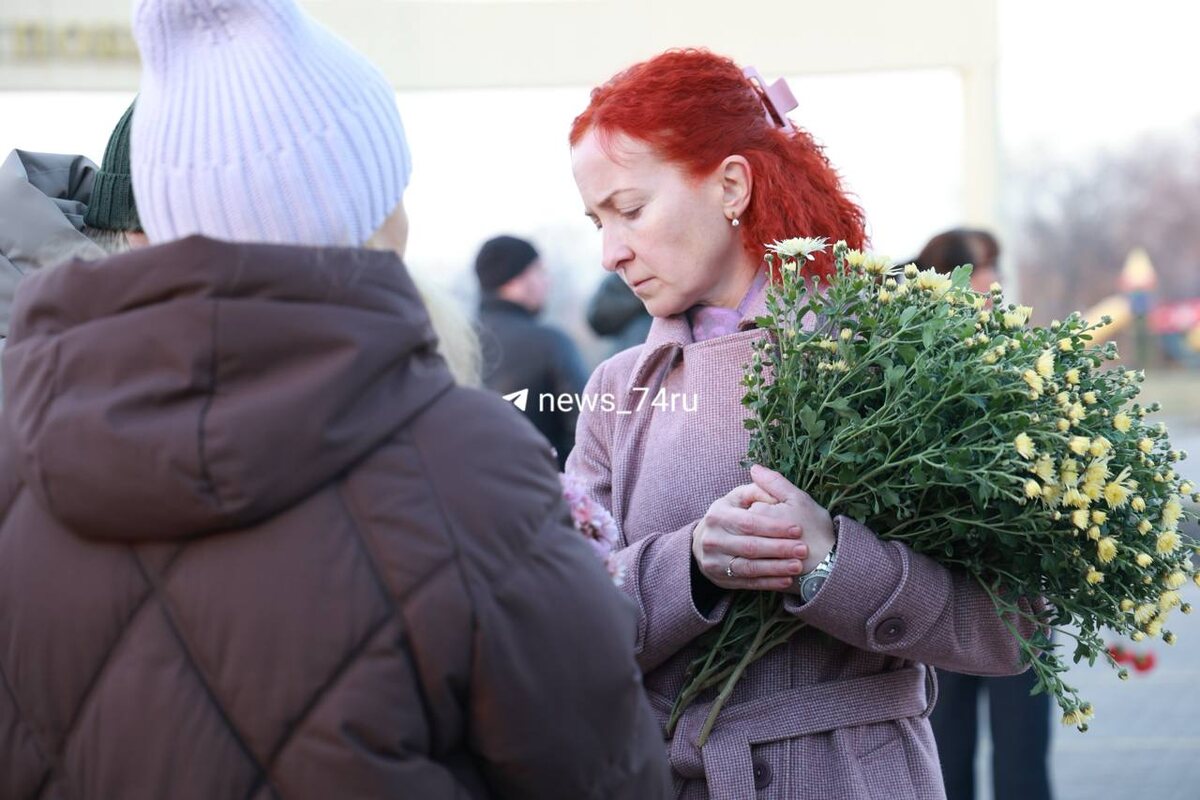 В одном из скверов Копейска собрались сотни людей на возложение цветов в память о погибших при взрыве на заводе