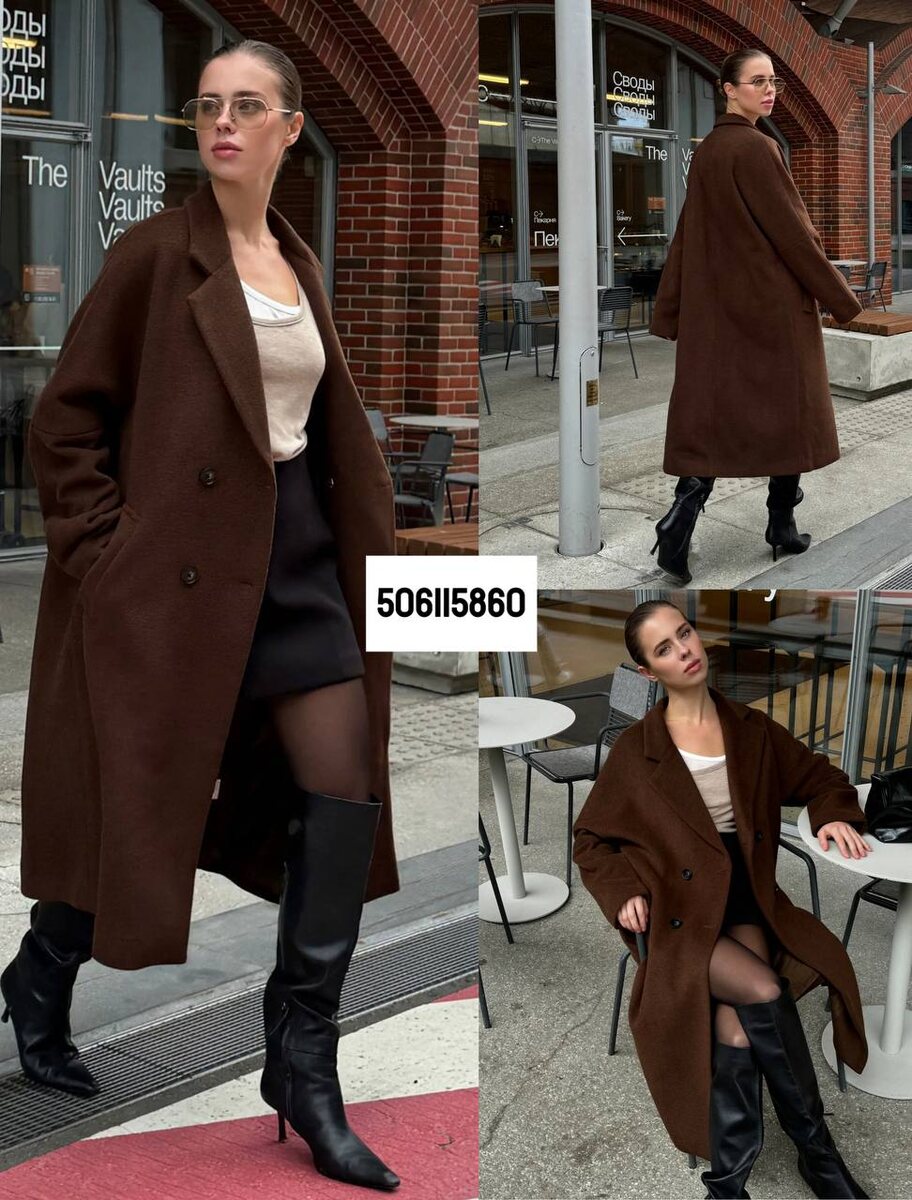 Что это. Двубортное пальто насыщенного шоколадного оттенка с мягкой линией плеч и свободной посадкой по типу кокона. Длина прикрывает колено, полочки перекрываются щедро — тепло и визуально стройнит. Материал с плотной, чуть ворсистой фактурой — выглядит благородно и не «пылесосит» ворсинки.