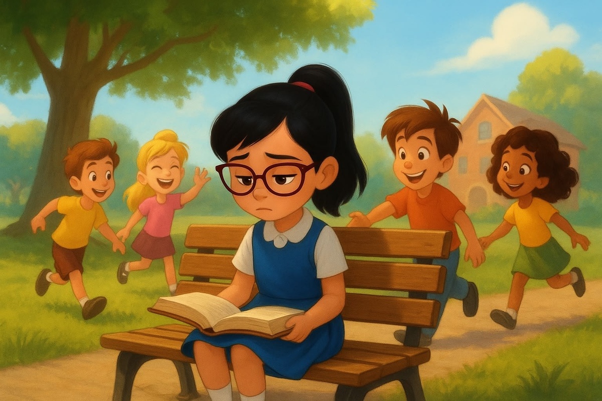 Сказка «Мия и потерянная дружба» Жила-была в солнечном городе девочка по имени Мия. Она была очень умной — знала столицу каждой страны, могла решить любую задачу быстрее калькулятора и читала книги, в которых взрослые путались после третьей страницы. Учителя ею восхищались, а родители гордились. Вот только одно омрачало жизнь Мии — с ней никто не хотел дружить. На переменах дети играли в прятки, рисовали мелом на асфальте и смеялись до упаду. А Мия сидела одна на скамейке, с важным видом листала энциклопедию. Если кто-то подходил, она сразу начинала: — Ты неправильно пишешь слово «корабль»! Там же мягкий знак! Или: — Ха, это ведь элементарно! Я уже давно знаю, как это делается! И вот дети уходили — обиженные, с опущенными плечами. Мия только пожимала плечами: — Ну что ж, не всем дано быть умными, — думала она. Так шли дни. Мия всё больше гордилась своими знаниями и всё сильнее скучала. Однажды в школу пришёл новый ученик — мальчик по имени Тим. Весёлый, улыбчивый, с растрёпанными