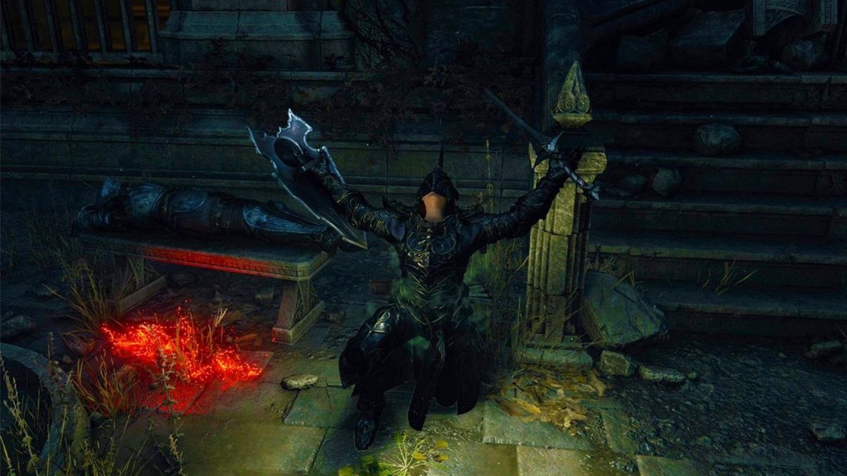 Геймеры, вспоминая механики открытия секретных комнат из других соулсов, стали возле порога использовать всевозможные жесты, да облачать персонажей в разные доспехи. Причём всё это делалось, как при чёрной, так и при белой тенденциях. Кхм… Для не знакомых с Demon’s Souls. Грубо говоря, в зависимости от действий геймера условия игрового мира слегка разнятся. Изменяется урон, наносимый врагами, их здоровье, корректируется процент выпадения некоторого лута и так далее. Отличий хватает.