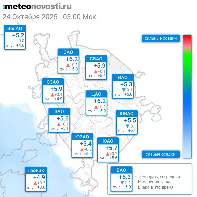 В 3:00 в Москве было от +4.8°C до +6.5°C, средняя температура +5.7°C #погода #Москва #осень #температура #24октября #пятница